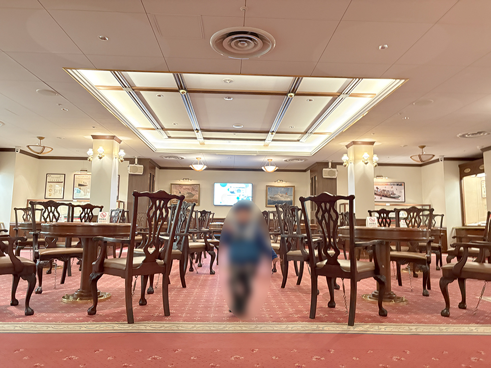 豪華客船のファーストクラス・ラウンジをそのまま体験できるスペースです。重厚な家具、温かみのある照明…細部にわたって「昔の船旅」の雰囲気が再現されています。
