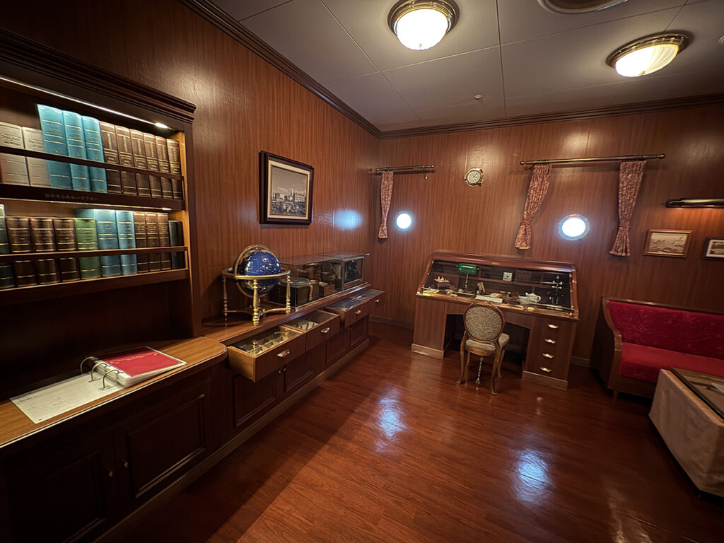 【個人の体験】施設内で最も惹かれたのが、この船長室です。20世紀初頭のイギリス船をイメージした空間です。