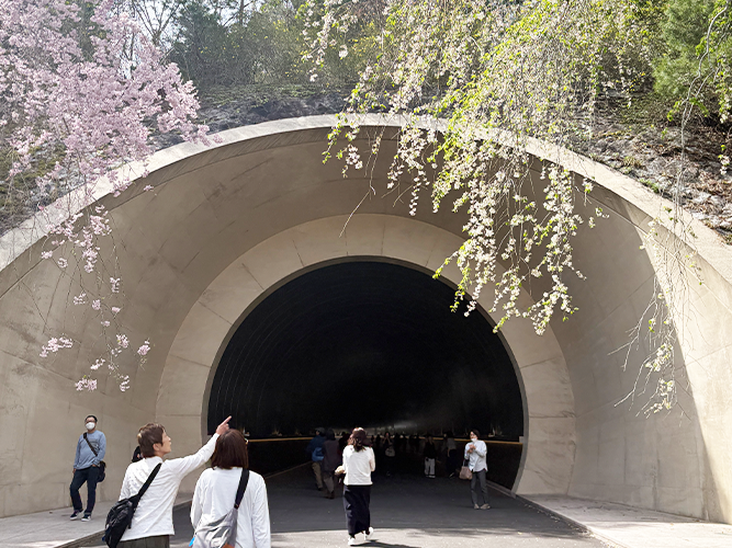 2. コンセプトは中国の詩「桃花源記」の桃源郷。「桃の林→洞窟→理想郷」=「桜並木→トンネル→美術館」という対応関係になっている。