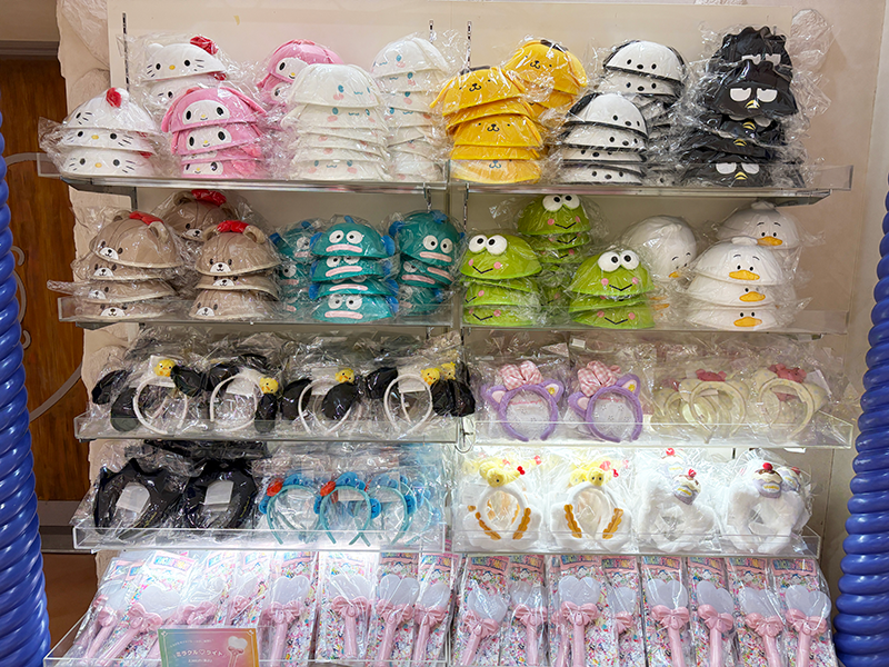 定番のキャラ帽やカチューシャ!こういうテーマパークでしか使えないグッズとか憧れるけど、私一人では使えないし買えなかったです。